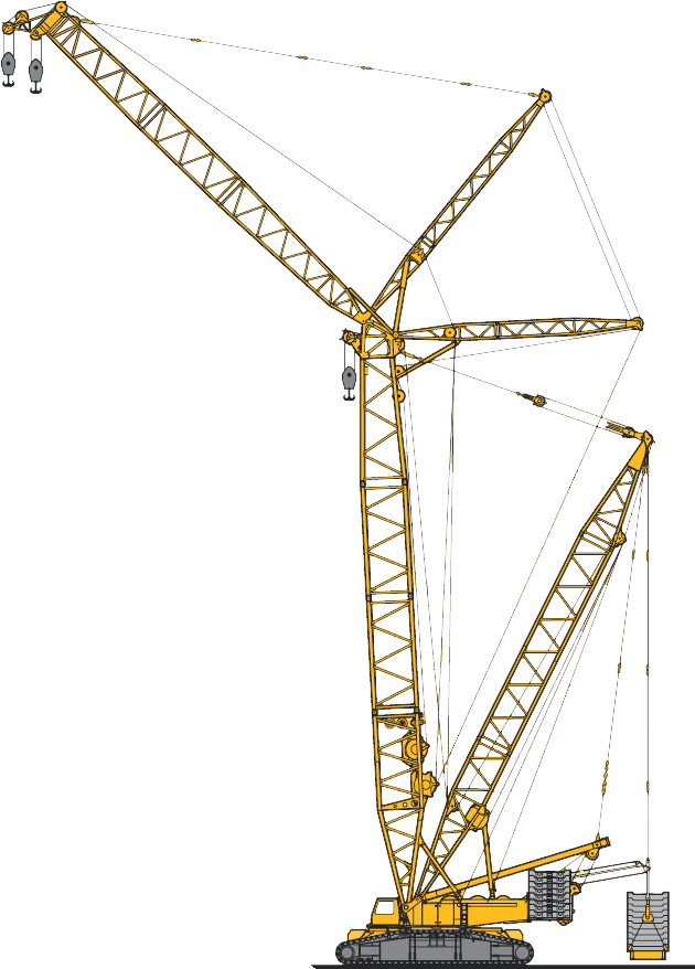 The LR 1400/2 crawler crane features include a multi-functional boom system, simple, fast crane set-up and low cost transport of the crane components. Its variable derrick System with hydraulic control delivers enormous load capacities.